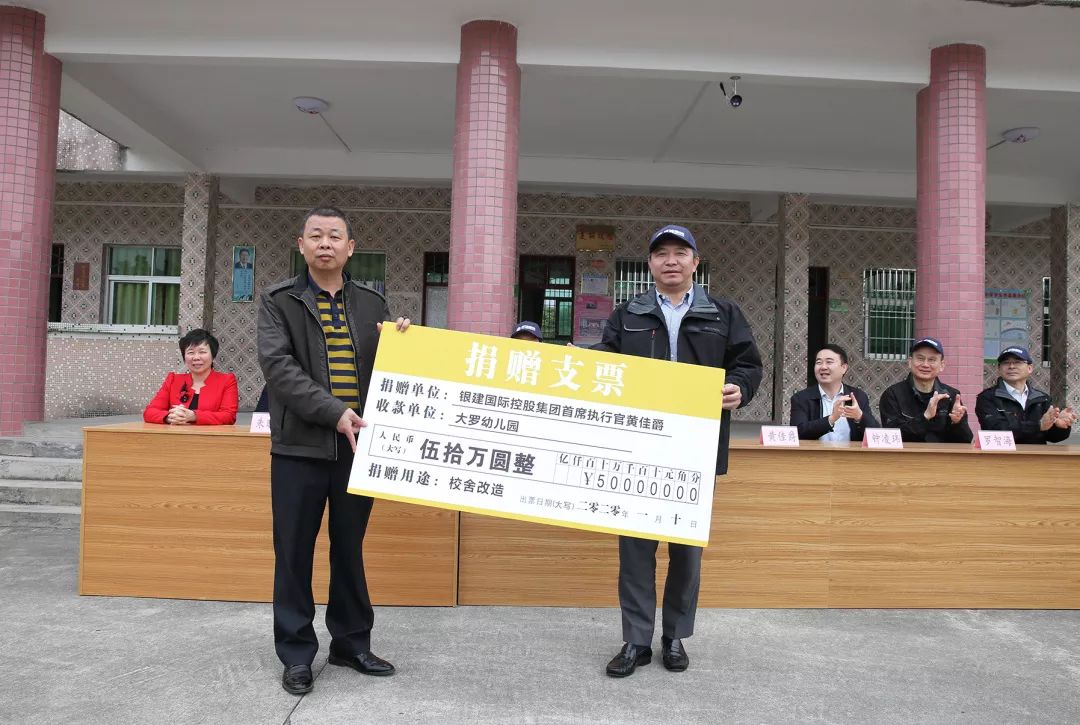 捐贈(zèng)儀式上,集團(tuán)首席執(zhí)行官黃佳爵個(gè)人向大羅小學(xué)捐贈(zèng)了50萬元,集團(tuán)公司其它成員籌集善款17萬元整。黃佳爵先生表示,他個(gè)人的捐款主要用于建設(shè)大羅幼兒園,希望孩子們從小就受到科學(xué)、優(yōu)質(zhì)的基礎(chǔ)教育,努力學(xué)習(xí),用知識(shí)改變命運(yùn)。